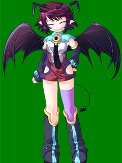 キバが生えてます。羽と尻尾も生えてます。アリンコ型触覚も標準装備。尻尾の先っぽがハート型なのは、別に某ド○ンちゃんの真似ではありません。女の子悪魔の尻尾がハートなのは万国共通です。